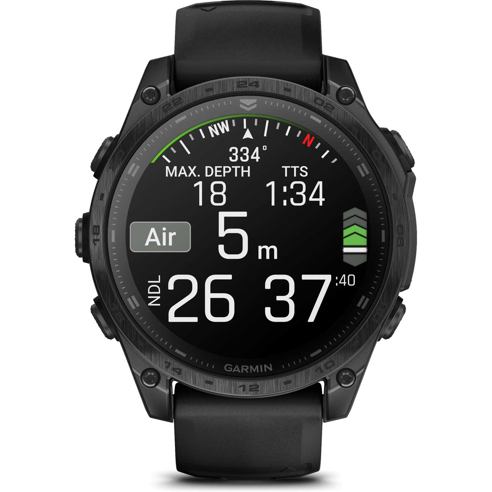 - Diving functions: The smartwatch supports recreational diving (single gas) and apnea diving for dives down to 40 meters thanks to official diving certification and waterproof, inductive buttons.