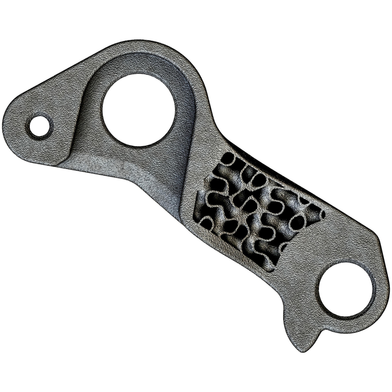 SILCA 3D printed titanium derailleur hangers bring increased strength and stiffness to this overlooked component so critical to quick and precise shifting. Modern electronic derailleurs shift so fast, and with such force, that conventional hangers made from low grade aluminum plate will flex up to 4 degrees during a shift resulting in less precise and slower shifting.