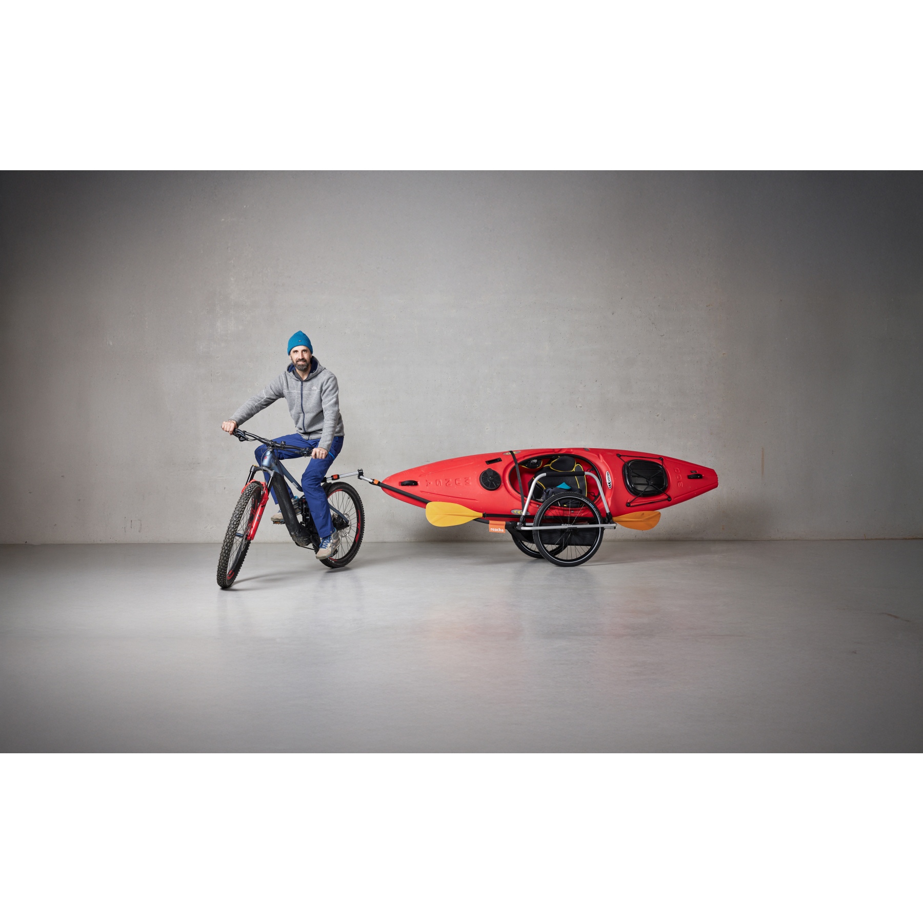 Le Reacha Sport se distingue par sa polyvalence. Avec son timon extensible et son cadre réglable, il est parfait pour le transport d’objets longs ou encombrants comme les planches de surf, les kayaks ou les sacs de sport. Grâce au support pour vélo facile à utiliser, il peut être tiré à la main ou fixé au vélo sans effort.